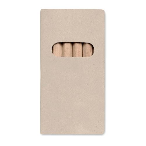 6 kredek w kartonowym pudełku z recyklingu. Wymiary produktu: 9X4,5X0,8 CM Materiał: Drewno
