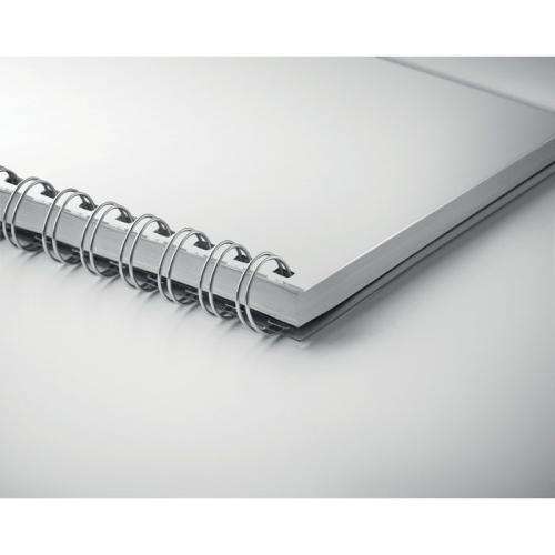 Notatnik A5 z okładką RPET. Podwójna spirala. 160 białych stron w linie pochodzących z recyklingu (80 kartek).