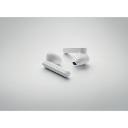 Bezprzewodowe słuchawki douszne ABS True Wireless Stereo (TWS) 5.3 z mikrofonem i karabińczykiem. Bateria 30 mAh. Czas odtwarzania ok. 4 godzin. Z baterią ładowaną energią słoneczną. Automatyczne parowanie. W zestawie kabel do ładowania typu C i stacja ładująca 200 mAh.