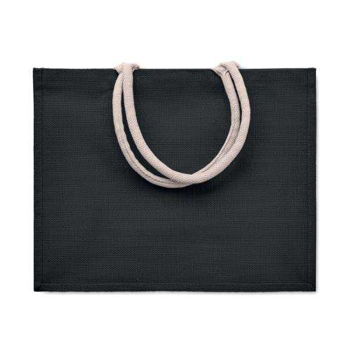 Laminowana jutowa torba plażowa lub na zakupy z bawełnianym uchwytem. Krótkie uchwyty. Wymiary produktu: 43X20X34CM Materiał: Juta