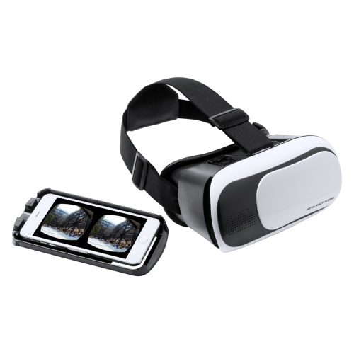 Bercley. Okulary VR AP781119-01. Plastikowa gogle wirtualnej rzeczywistości z regulowanymi soczewkami, elastycznym paskiem i uniwersalnym uchwytem na telefon. Obsługuje smartfony z ekranem 4,5-6,5 cala.