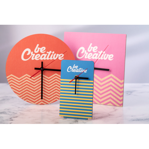 Wykonany na zamówienie, kwadratowy zegar ścienny ze sklejki brzozowej z personalizowaną grafiką. Działa z 1 baterią AA, bez baterii w zestawie. Min. ilość: 50 szt.