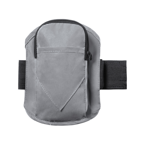 Odblaskowa opaska na ramię z poliestru, do biegania, z kieszenią zapinaną na zamek. Kieszeń idealna do przenoszenia telefonu komórkowego, kluczy, gotówki czy karty kredytowej. Poliester 210T.