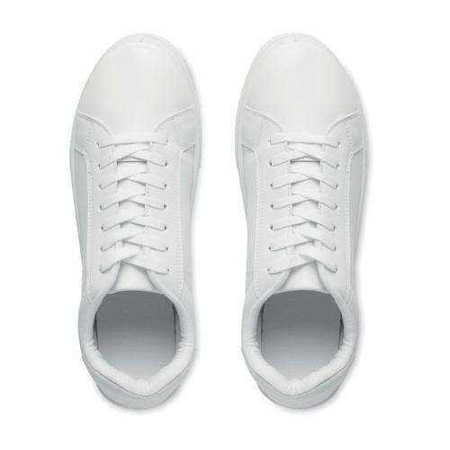 Lekkie trampki z PU z gumową podeszwą zewnętrzną i poliestrowymi sznurowadłami. Rozmiar: 47. Zapakowane w białe pudełku na buty. Trampki są dostarczane ze sznurowadłami nawleczonymi tylko na 2 pierwsze oczka.