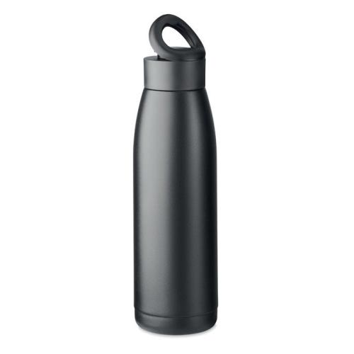 Dwuścienna butelka (90% z recyklingowanej stali nierdzewnej i 10% ze stali nierdzewnej) z silikonową pokrywką. Wystarczy potrząsnąć, aby temperatura powierzchni zmieniła się na ogrzewanie lub chłodzenie, w zależności od płynu znajdującego się w środku. 400 ml.