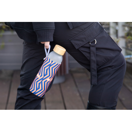 Szklana butelka z bambusową nakrętką personalizowanym filcowym etui RPET z full kolorową grafiką i charakterystyczną metką RPET. Cena obejmuje nadruk sublimacyjny. 500 ml Min. ilość: 50 szt. Nie nadaje się do napojów gazowanych.