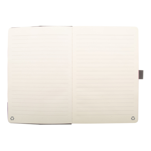 Notes z okładką z poliestru RPET, z wkładką bambusową, funkcją uchwytu na telefon i wbudowaną szybką ładowarką indukcyjną (15W). Zawiera 80 kartek w linie z papieru makulaturowego. Rozmiar A5. W zestawie kabel do ładowarki USB.