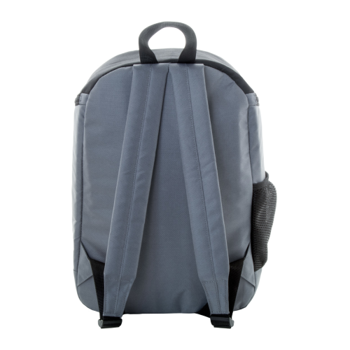 Plecak termoizolacyjny RPET z aluminiową wyściółką, boczną kieszenią z siateczki, komorą główną zapinaną na zamek i kieszenią przednią. Poliester 600D RPET, z charakterystyczną metką RPET.