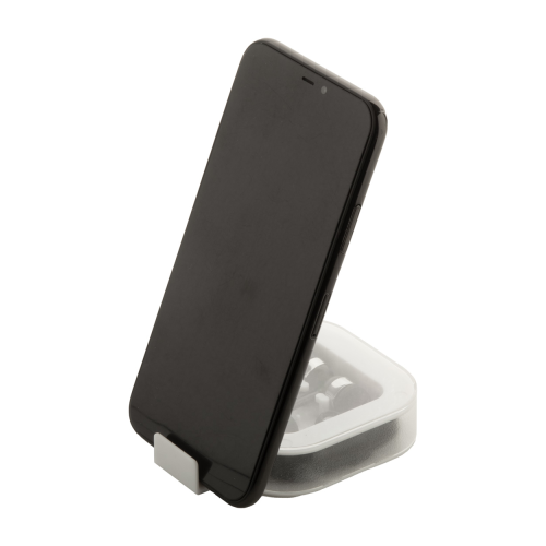 Słuchawki douszne z cyfrowym złączem USB-C i 3 parami wkładek dousznych, w plastikowym etui z funkcją uchwytu na telefon.