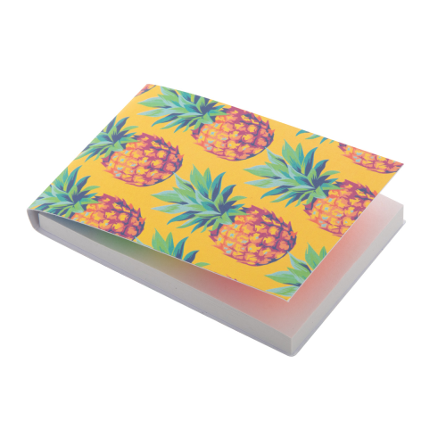 Personalizowany notatnik z samoprzylepnymi karteczkami z okładką z papieru. Zawiera 50 karteczek samoprzylepnych w rozmiarze 50×75 mm i 100 plastikowych znaczników do stron w 5 różnych kolorach (44×12 mm). Cena obejmuje nadruk full kolor na okładce zewnętrznej. Min. ilość: 100 szt.