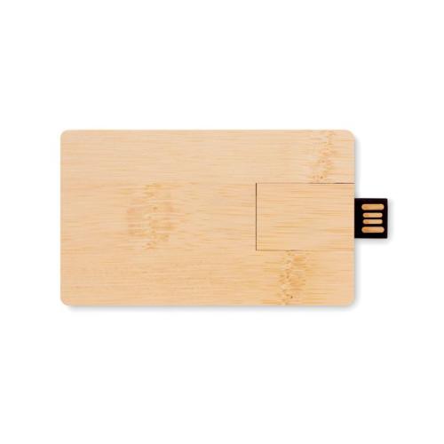 Pamięć flash USB 2.0 16 GB z bambusową ochronną osłoną. Bambus jest produktem naturalnym, mogą występować niewielkie różnice w kolorze i rozmiarze między egzemplarzami, co może wpłynąć na końcowy efekt wizualny. Wymiary produktu: 9X5,5X0,5 CM Materiał: Bambus