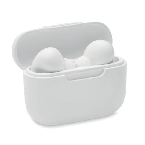 Bezprzewodowe słuchawki douszne z ABS, stereo True Wireless Stereo (TWS) 5.3 z mikrofonem i akumulatorem 30 mAh. Czas odtwarzania około 3 godziny. Wejście typu C. Automatyczne parowanie. W zestawie kabel do ładowania typu C i stacja ładująca 180 mAh. Wymiary produktu: 7,8X5,7X3,5CM Materiał: ABS z Recyklingu
