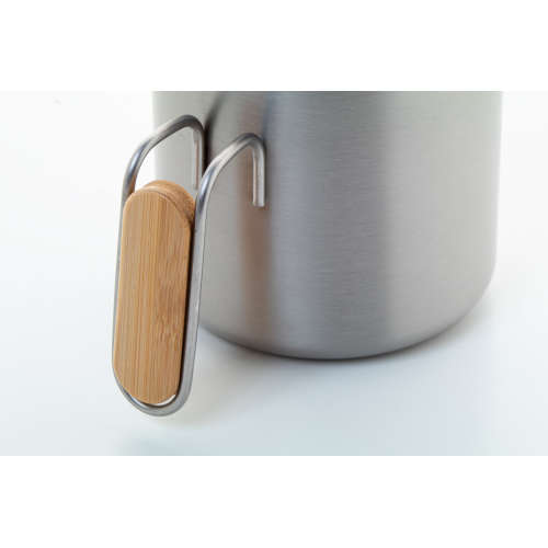 Kubek termiczny ze stali nierdzewnej z recyklingu o podwójnych ściankach, z bambusową pokrywką i uchwytem. 300ml.