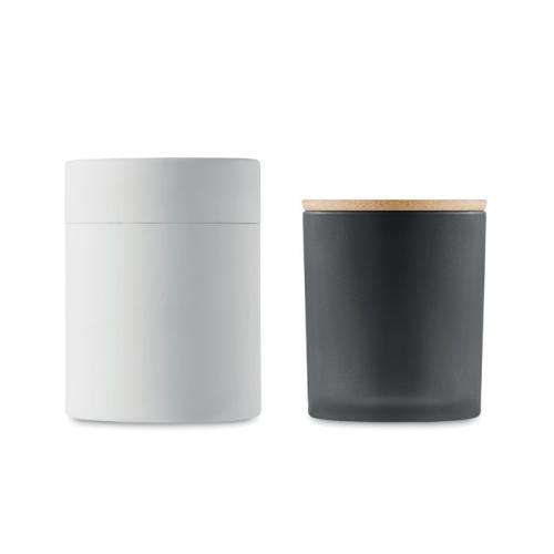 Wosk roślinny, świeca roślinna o zapachu cynamonu, wanilii, drzewa sandałowego lub jaśminu, w szklanym, matowym słoiku z bambusową pokrywką. 200 gr. Czas palenia: 33 godziny. Zapakowana w papierowe pudełko upominkowe w kształcie tuby. Bambus jest produktem naturalnym, dlatego mogą wystąpić nieznaczne różnice w kolorze, wzorze i rozmiarze.