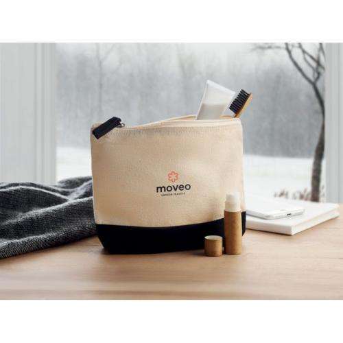 Kosmetyczka z bawełny z kolorowym elementem i dopasowanym suwakiem. 340 gr/m². Wymiary produktu: 21.5X5X15CM Materiał: Bawełna
