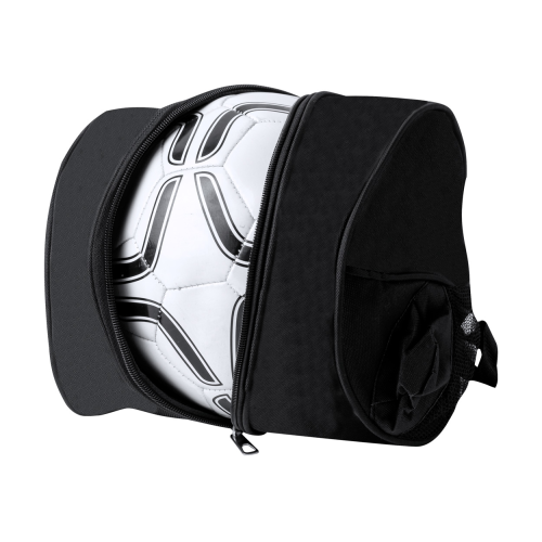 Zapinana na zamek torba na piłki, wykonana z poliestru 600D RPET, z siatkową kieszenią na butelkę i regulowanym paskiem na ramię. Dostarczane bez piłki.
