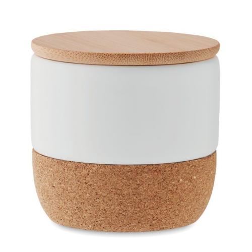 Świeca o zapachu świeżego lnu z wosku roślinnego w kamionkowym pojemniku z bambusową pokrywką i korkową podstawą. 80 gr. Czas palenia: 7,5 godziny. Bambus jest produktem naturalnym, dlatego mogą wystąpić nieznaczne różnice w kolorze, wzorze i rozmiarze. Wymiary produktu: Ø7X6,6CM Materiał: Ceramika Kamionkowa