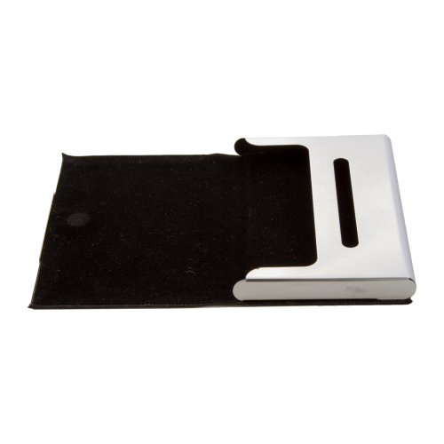 Merpet. Wizytownik AP800518-10. Metalowy wizytownik pokryty poliestrem RPET z metalową częścią do nadruku.