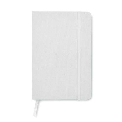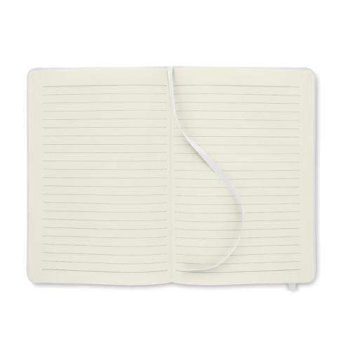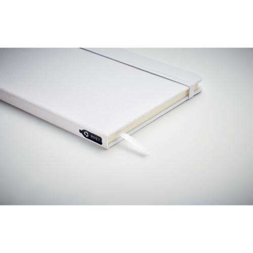 Notatnik A5 z twardą okładką 600D RPET. 160 stron (80 kartek) w linie z papieru ekologicznego. Dopasowany elastyczny pasek zamykający i zakładka z tasiemki.