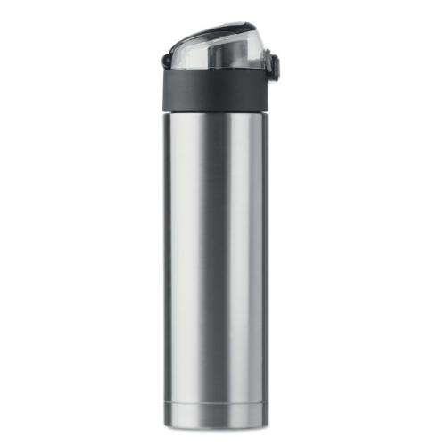 Butelka do picia ze stali nierdzewnej z podwójnymi ściankami z blokadą zabezpieczającą i opcją ”naciśnij, aby otworzyć”. Posiada składany uchwyt dla łatwego przenoszenia. 400 ml. Funkcja leak free zapewniająca szczelność. Szczelna.