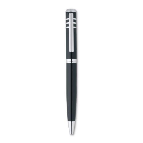 Przekręcany, metalowy długopis, błyszczące lakierowane wykończenie. Kartonowe ozdobne pudełko. Czarny wkład. Wymiary produktu: 17X6X2,3 CM Materiał: Metal