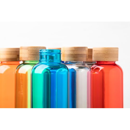 Butelka RPET z bambusową pokrywką, 500 ml. Nie zawiera BPA. Nie nadaje się do napojów gazowanych.