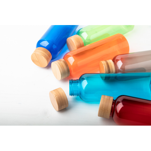 Butelka RPET z bambusową pokrywką, 500 ml. Nie zawiera BPA. Nie nadaje się do napojów gazowanych.