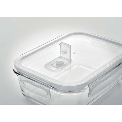 Pojemnik na lunch ze szkła borokrzemianowego z hermetyczną pokrywą z PP. Nadaje się do mikrofalówki. Pojemność 900 ml.