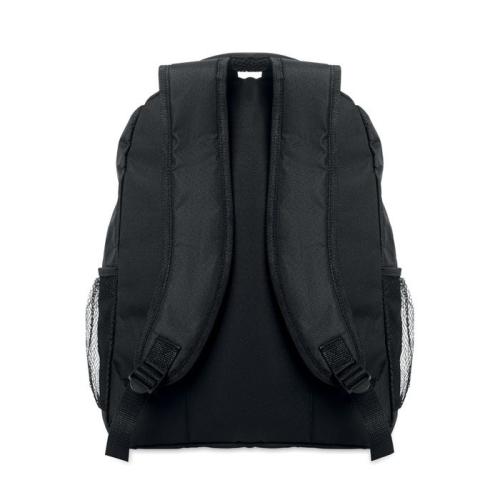 Plecak na laptopa 15 cali z poliestru 600D RPET z wyściełaną przegrodą na laptopa wewnątrz, kieszeniami z siatki po obu stronach i przednią kieszenią zapinaną na zamek.