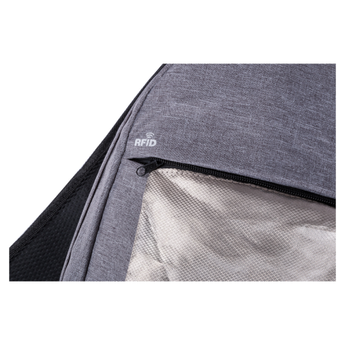 Plecak z ochroną RFID i wieloma przegródkami na zamek błyskawiczny, wyściełaną przegrodą na laptopa (15″), wyściełanymi plecami i paskami na ramiona, Z wbudowanym złączem USB dla powerbanków, poliester 300D.