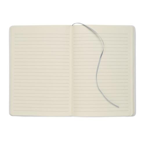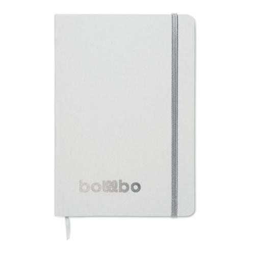 Notatnik A5 z twardą okładką wykonany w 70% z kartonu po mleku i w 30% z papieru z recyklingu. Białą okładka w kartonowej oprawie . 160 stron w linie (80 kartek). Gumka zamykająca, wstążkowa zakładka dopasowana do uwidocznionego koloru. Po grawerowaniu laserowym kolor jest widoczny.
