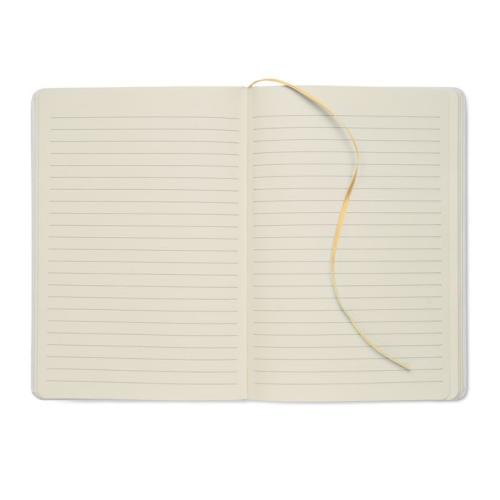 Notatnik A5 z twardą okładką wykonany w 70% z kartonu po mleku i w 30% z papieru z recyklingu. Białą okładka w kartonowej oprawie . 160 stron w linie (80 kartek). Gumka zamykająca, wstążkowa zakładka dopasowana do uwidocznionego koloru. Po grawerowaniu laserowym kolor jest widoczny.