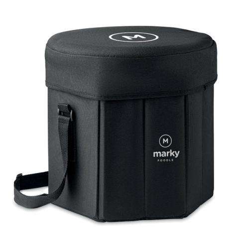 Składane siedzisko lub stół z poliestru 600D z torbą chłodzącą z folią aluminiową i paskiem do przenoszenia. Maksymalna waga 80 kg.
