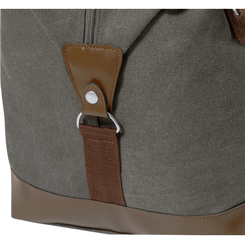 Płócienna torba sportowa z zapinaną na zamek komorą główną i przednią kieszenią. Z regulowanym paskiem na ramię, detalami i uchwytami ze skóry PU.
