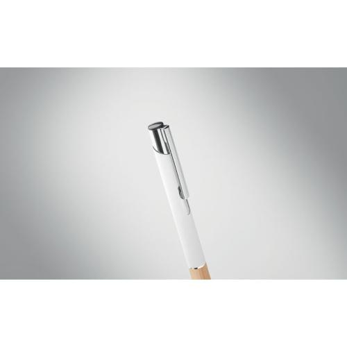 Przyciskany długopis z aluminium z bambusowym uchwytem. Niebieski tusz.