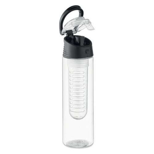 Butelka na wodę z RPET z wyjmowanym sitkiem do owoców, uchwytem do przenoszenia i szczelną zakrętką. Pojemność 500 ml. Wymiary produktu: Ø6.5X24.5CM Materiał: