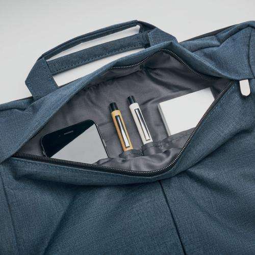Torba na laptop 360D, wykonana z poliestru, główna przegroda na laptop 15 inch. Z przodu kieszeń zapinana na suwak. Torba posiada odpinany i regulowany pasek na ramię oraz mocowanie na stelaż walizki.