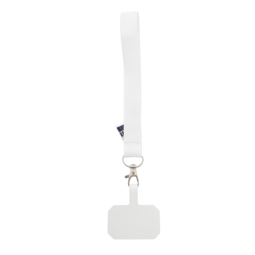 Personalizowany pasek na nadgarstek z uchwytem na telefon RPET z metalowym karabińczykiem i pełnokolorową wkładką do telefonu z nadrukiem odpornym na przedarcie. Nadruk sublimacyjny po obu stronach. Min. Ilość: 100 szt.