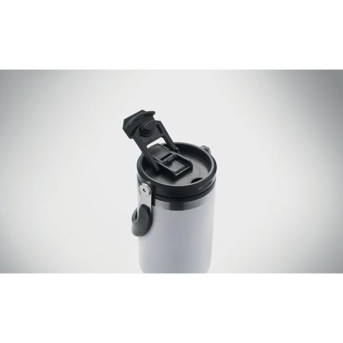 Kubek o podwójnych ściankach z recyklingowanej stali nierdzewnej (90% z recyklingowanej stali nierdzewnej i 10% ze stali nierdzewnej) z pokrywką z wewnętrzną słomką, składanym ustnikiem i otworem do bezpośredniego picia. Pojemność 850 ml.