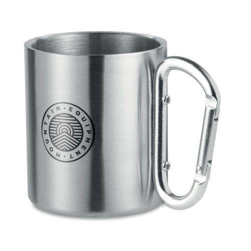 Kubek ze stali nierdzewnej, z uchwytem w postaci karabinka. Posiada podwójne ścianki. Pojemność: 220ml.