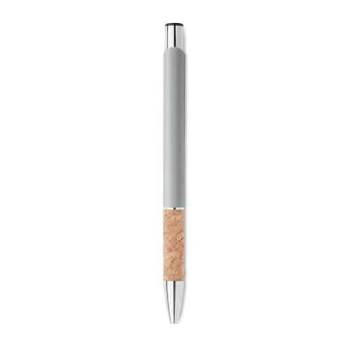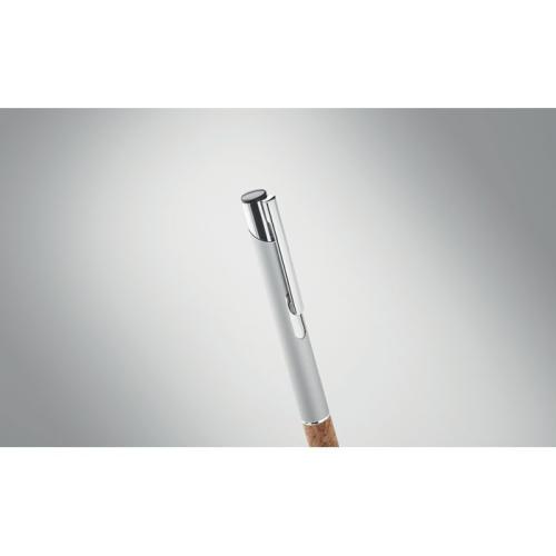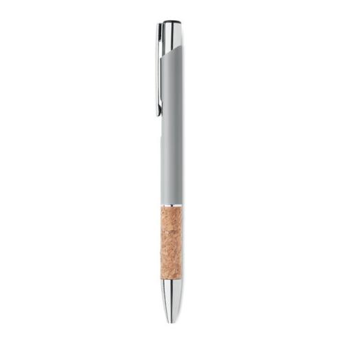 Przyciskany długopis z aluminium z korkowym uchwytem. Niebieski tusz.