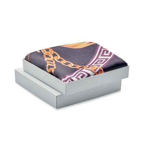 Szal z satynowego poliestru z recyklingu ze wzorem. Wymiary produktu: 90X90CM Materiał: RPET