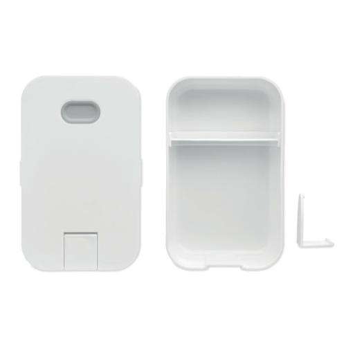 Lunchbox wykonany z PP z wbudowaną funkcją podstawki pod telefon. Wymiary produktu: 19X11X6 CM Materiał: PP