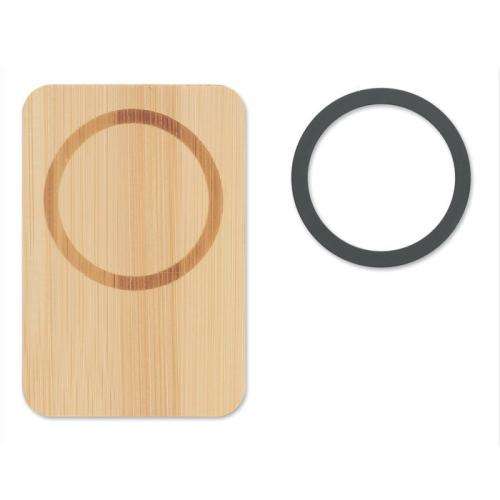 Magnetyczna bambusowa ładowarka bezprzewodowa (10 W) i power bank (4000 mAh). Wyjście: DC 9V/1,1A (10W) idealne do szybkiego ładowania. Kompatybilny z iPhone® 12 i nowszymi. W zestawie dodatkowy magnetyczny, metalowy pierścień do ładowania innych niemagnetycznych telefonów z funkcją ładowania bezprzewodowego. Bambus jest produktem naturalnym, dlatego mogą wystąpić nieznaczne różnice w kolorze, wzorze i rozmiarze. Wymiary produktu: 10X6,8X1,8 CM Materiał: Bateria