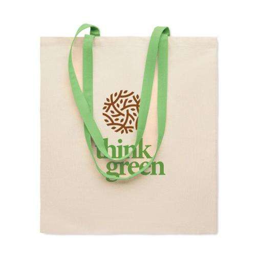 Bawełniana torba na zakupy z kolorowymi długimi uchwytami. 140 gr/m². Wymiary produktu: 38X42 CM Materiał: Bawełna